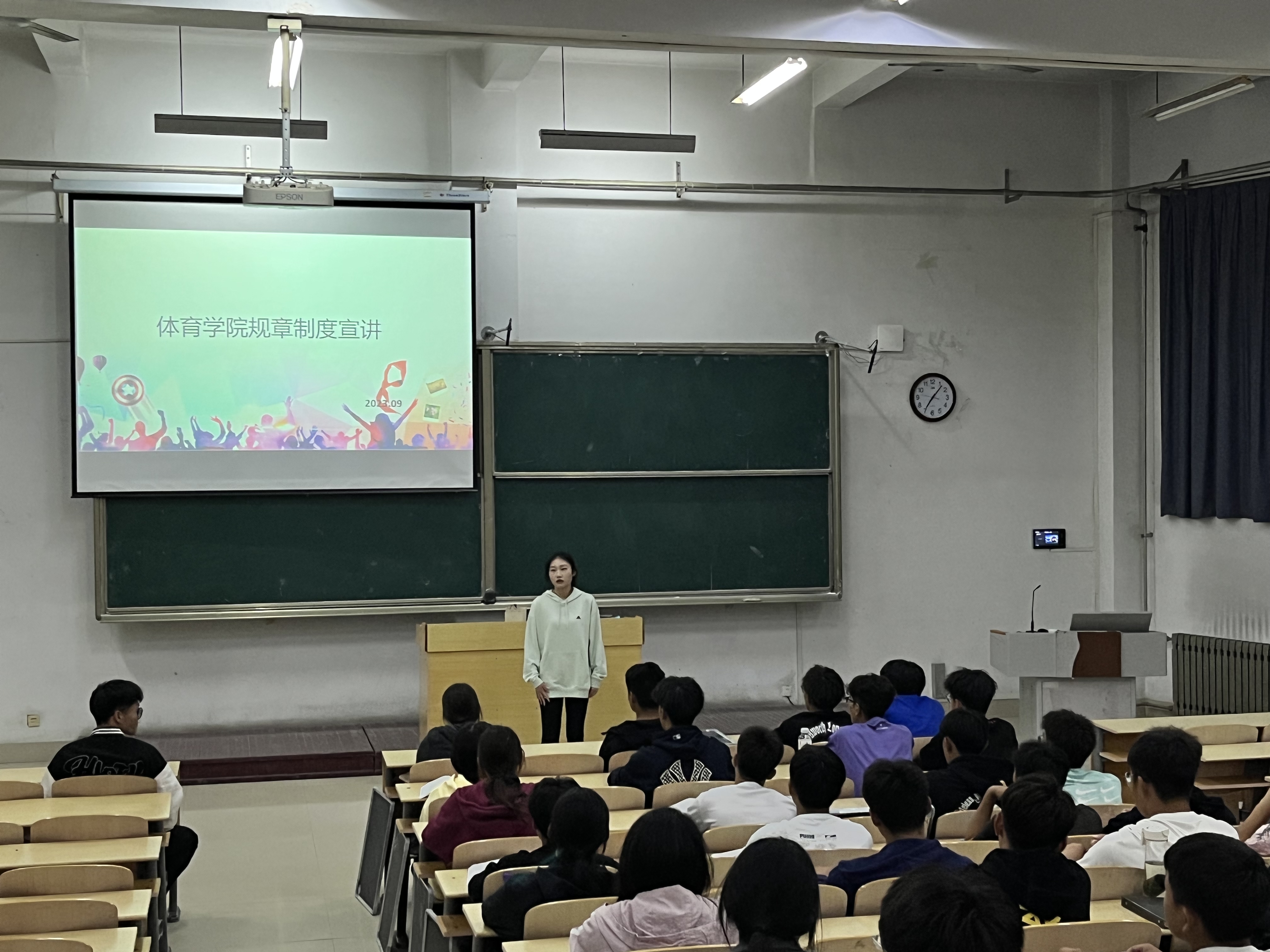 为了让2023级新生更好适应大学校园生活,了解学校的规章制度,培养学生守纪律、讲规矩的良好习惯。10月8日晚,437必赢会员中心在6教207面向新生开展规章制度宣讲会,本次活动邀请了学院自律督导部门女工部部长王玉茹、纪检部部长赵志浩、宿管部部长张圣哲三位同学来宣讲,2023级全体同学参与。