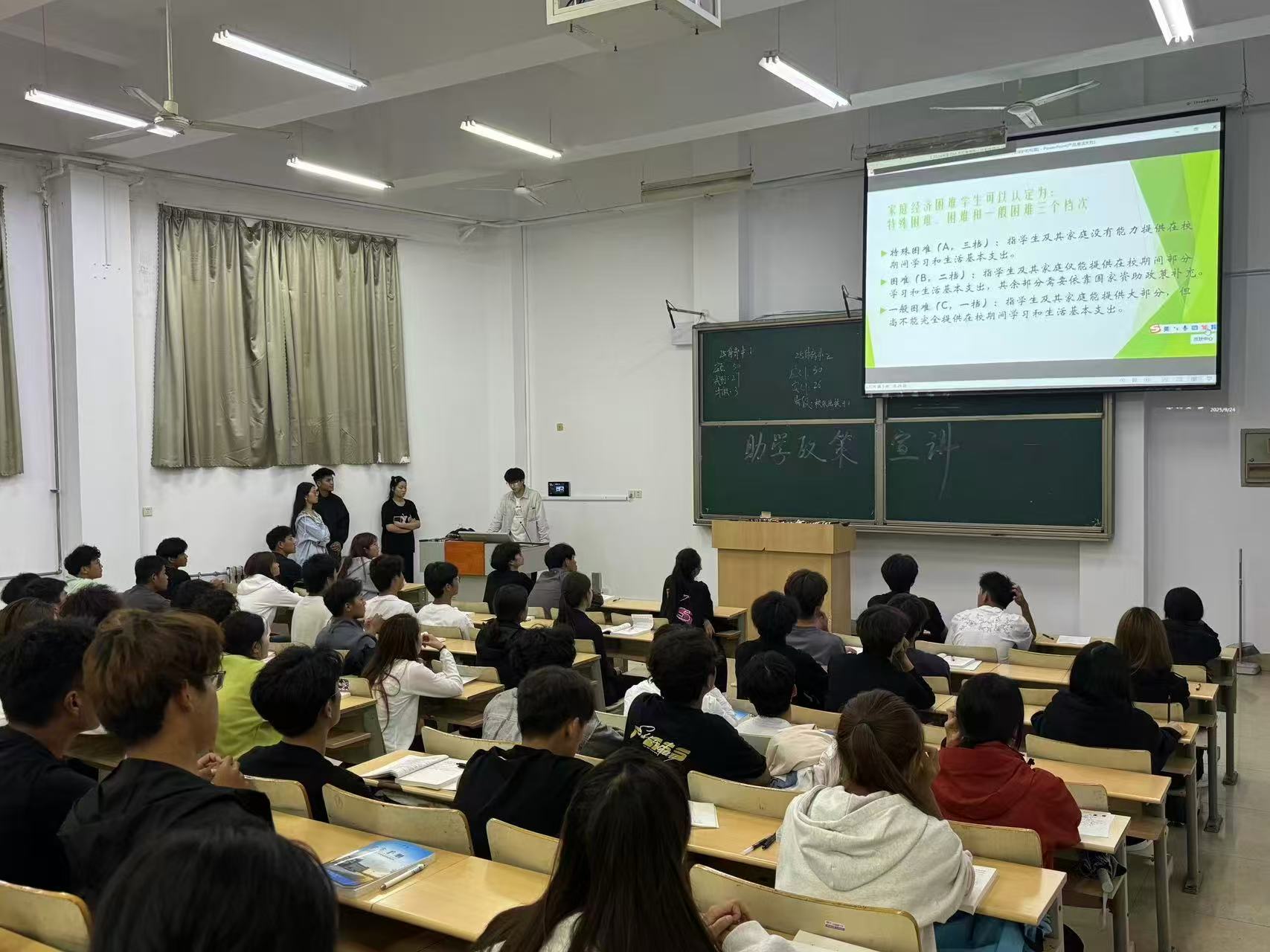 为切实落实国家资助政策,帮助2025级新生全面了解奖助体系、缓解求学顾虑,营造积极进取、奋发向上的学习氛围,437必赢会员中心于9月24日晚在第五教学楼307教室举办了资助政策专题宣讲会。本次宣讲会由学院助学维权部部长陈国旭主持,部门全体干事及2025级全体学生参加。